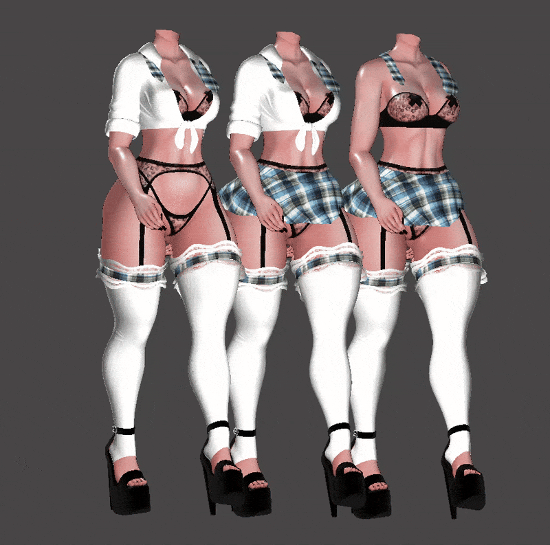SKIRT , NECK TIE AND SHIRT ARE RIGGED WITH ADDITIONAL BONES TO MOVE!